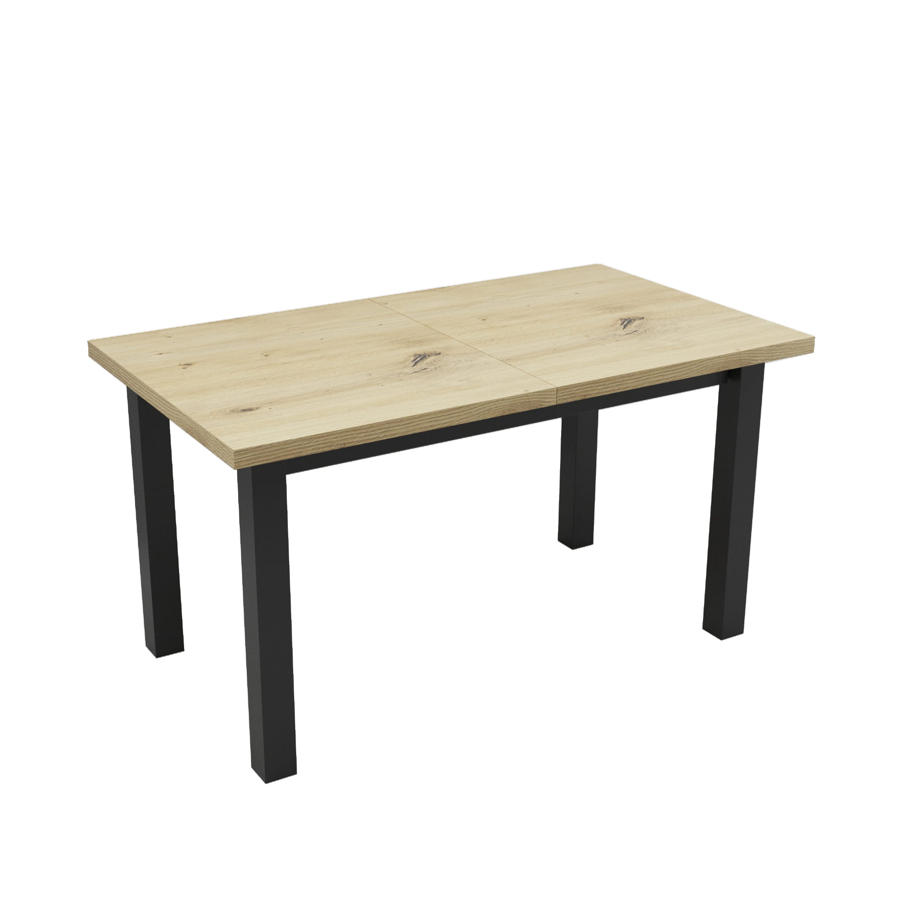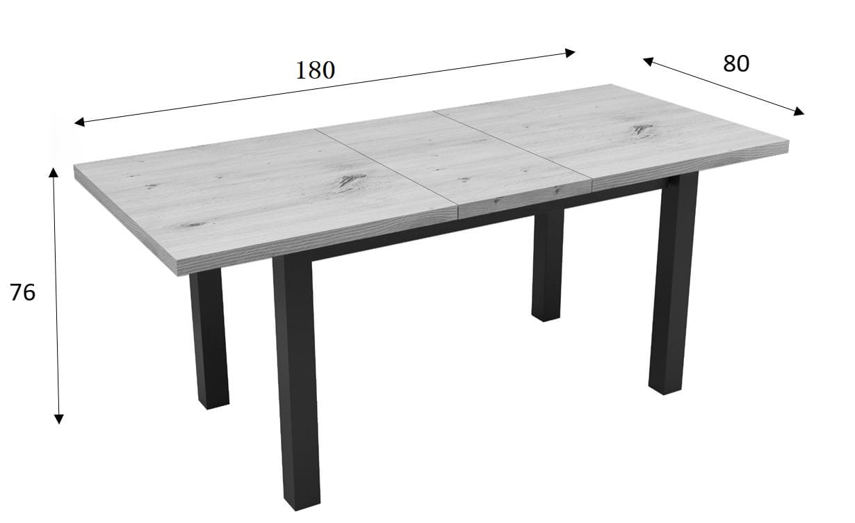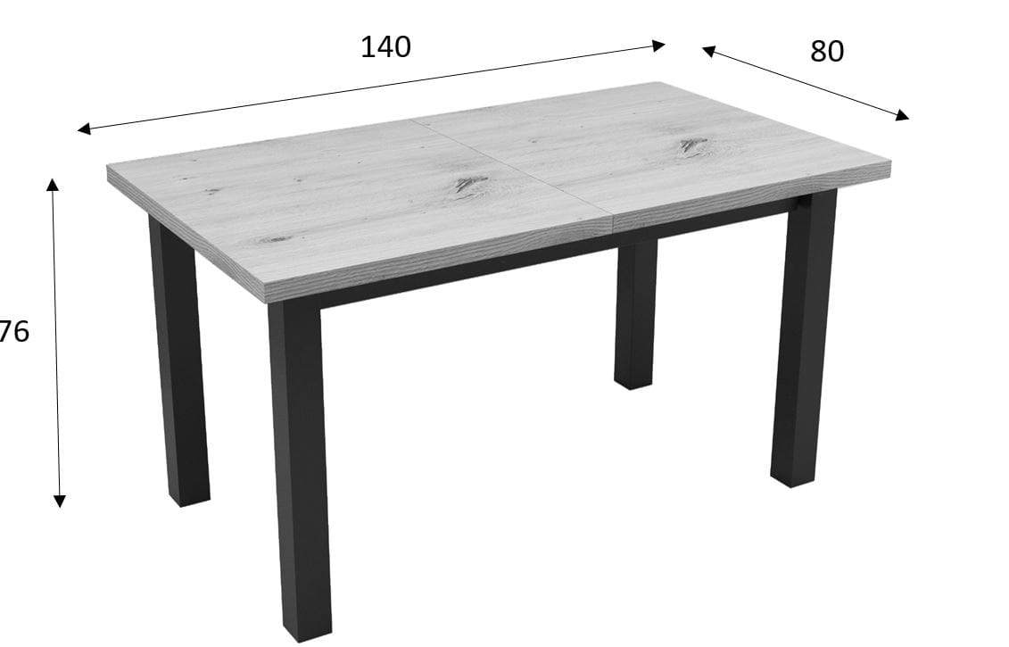 Solidny stół rozkładany o wymiarach 140x80. Rozkładany do 180cmIdealny do salonu, jadalni, biura, sali konferencyjnejKolorystyka: Dąb Artisan + czarne nogi Cechy charakterystyczne: