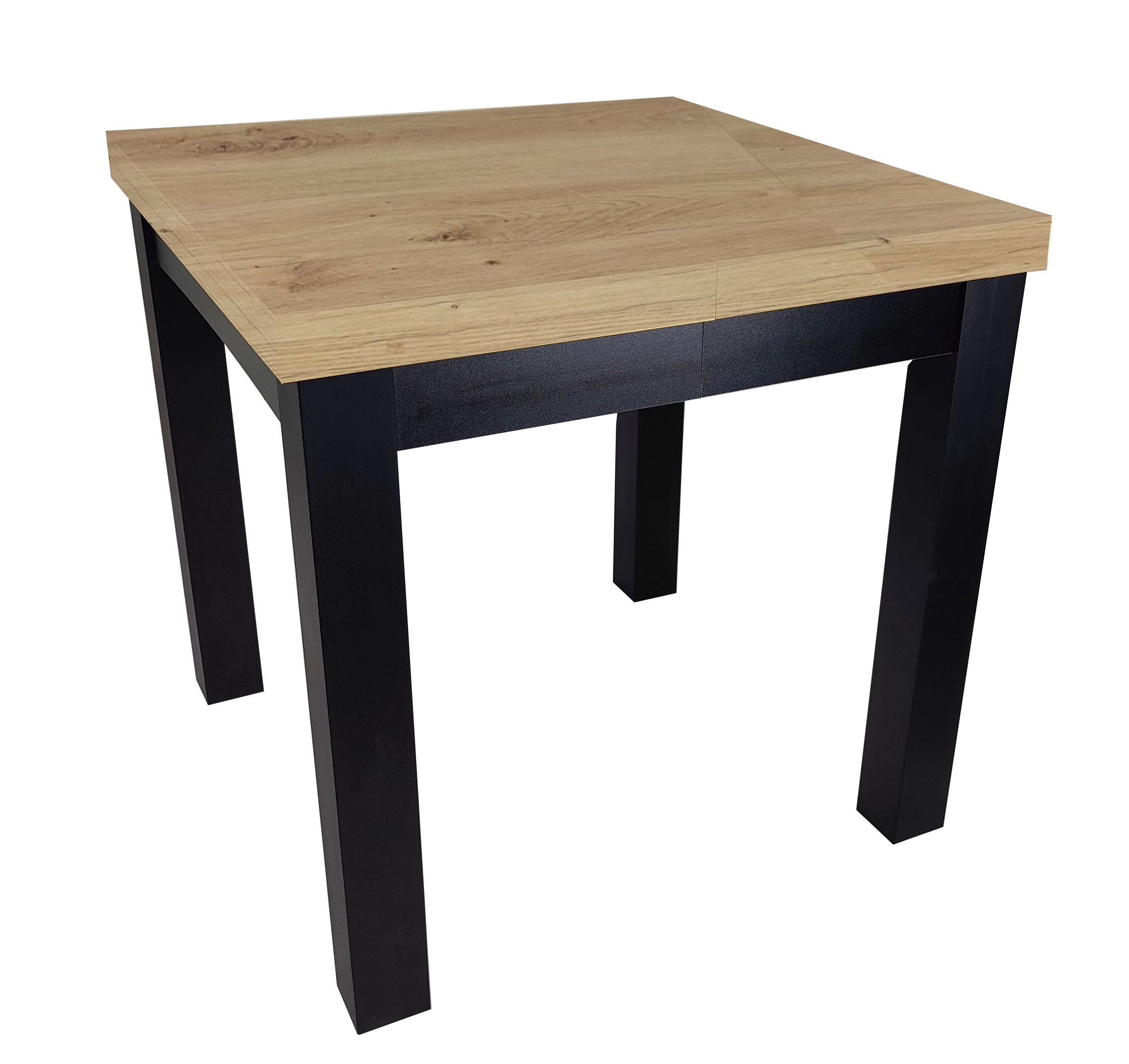 Stół prostokątny rozkładany 80x80/240 czarne nogi, Dąb Artisan + nogi drewniane