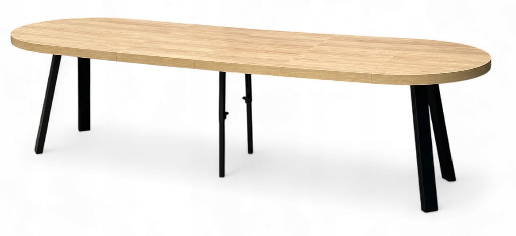 Stół rozkładany EGGER hikora okrągły Ø100/300 cm nogi metalowe czarne