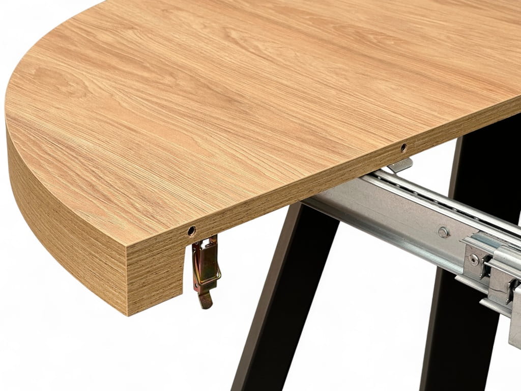 Stół rozkładany na prowadnicach łożyskowych.