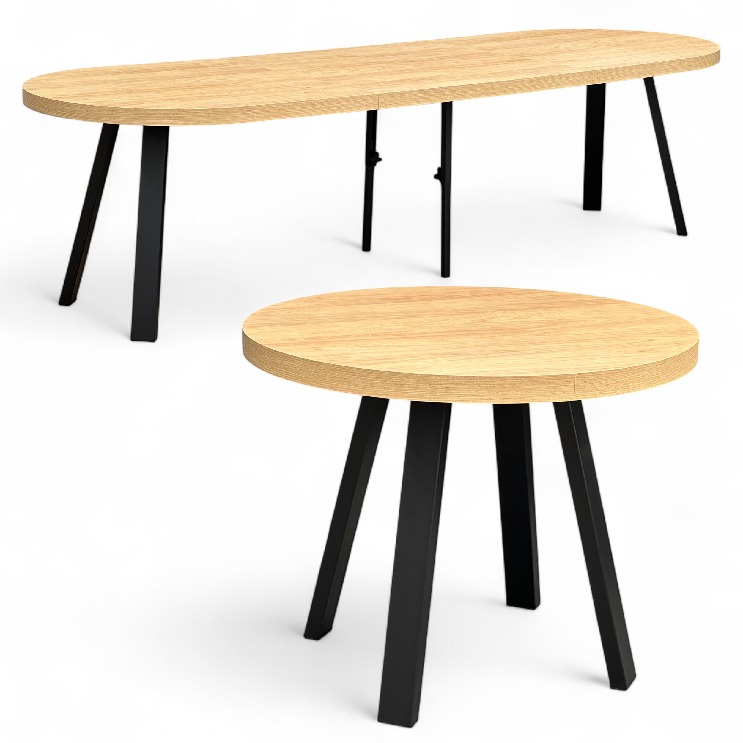 Stół rozkładany EGGER hikora okrągły Ø110/310 cm nogi metalowe V czarne