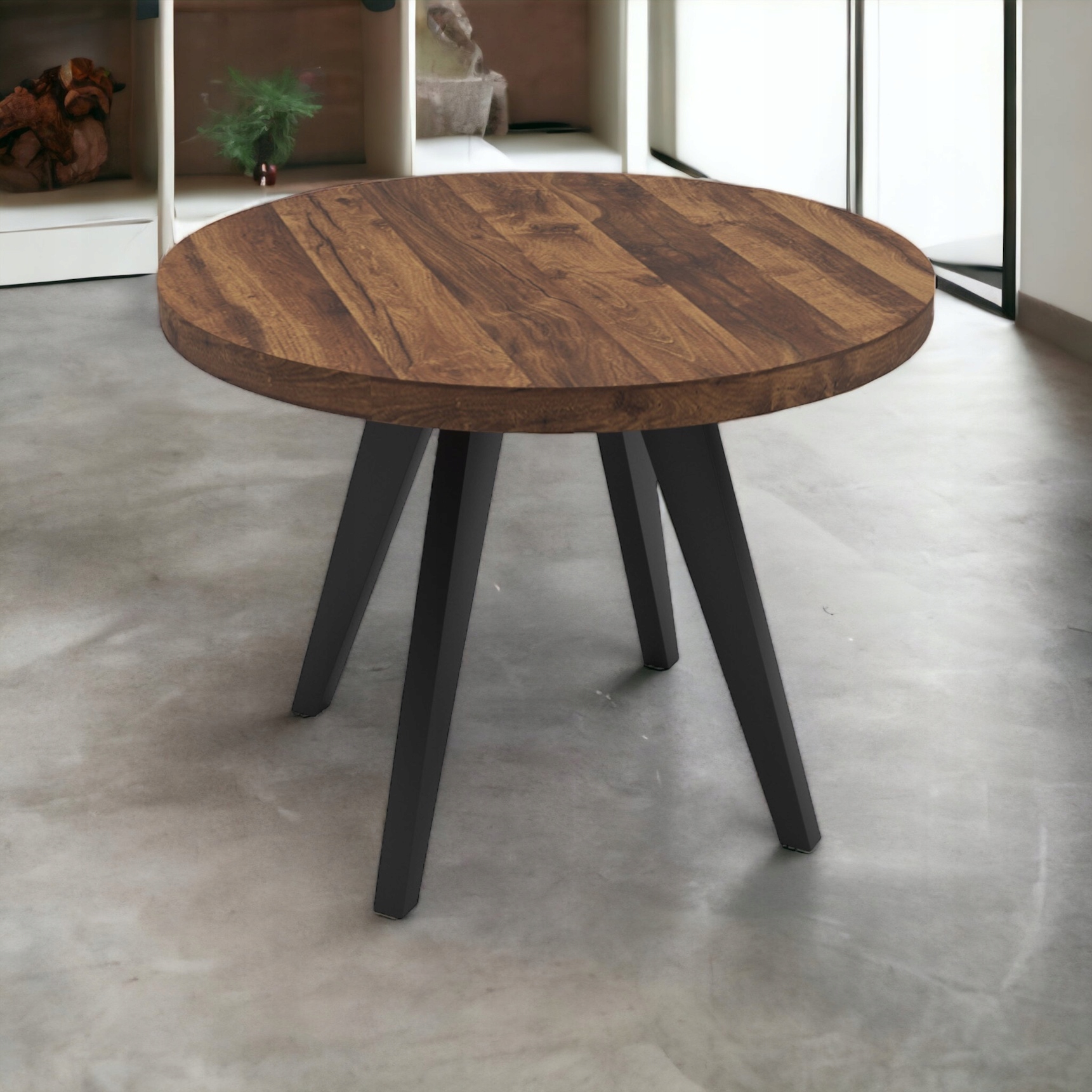 Stół rozkładany okrągły DĄB HUNTON CIEMNY Ø90/190 + nogi drewniane V