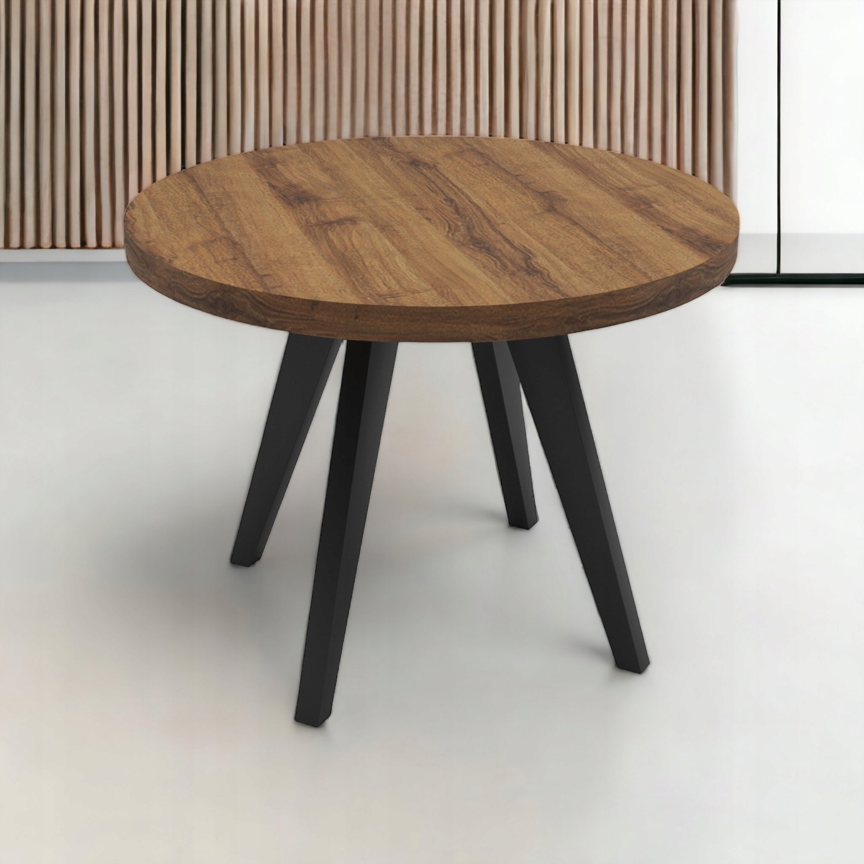Stół rozkładany okrągły DĄB SHERMAN KONIAK 110/210 + nogi drewniane V