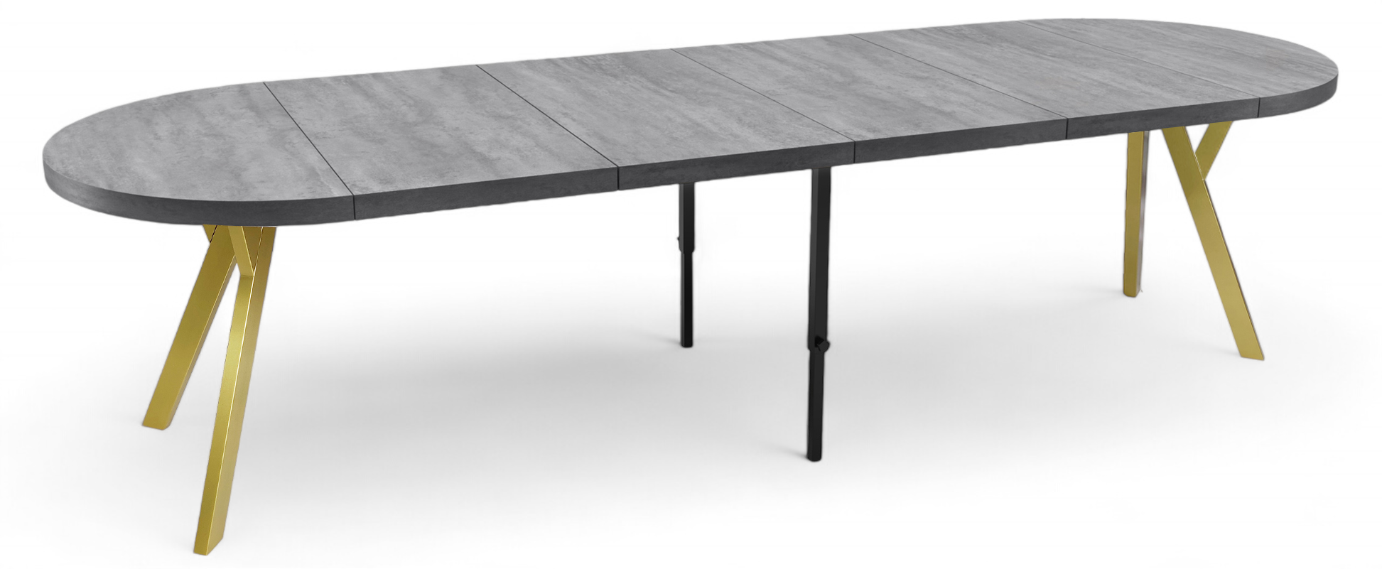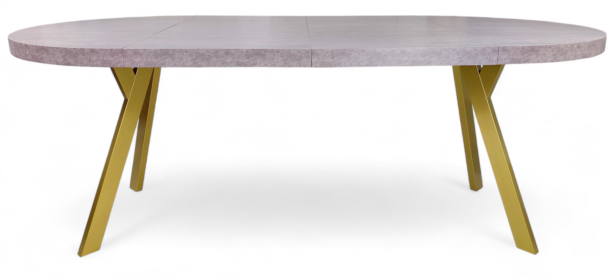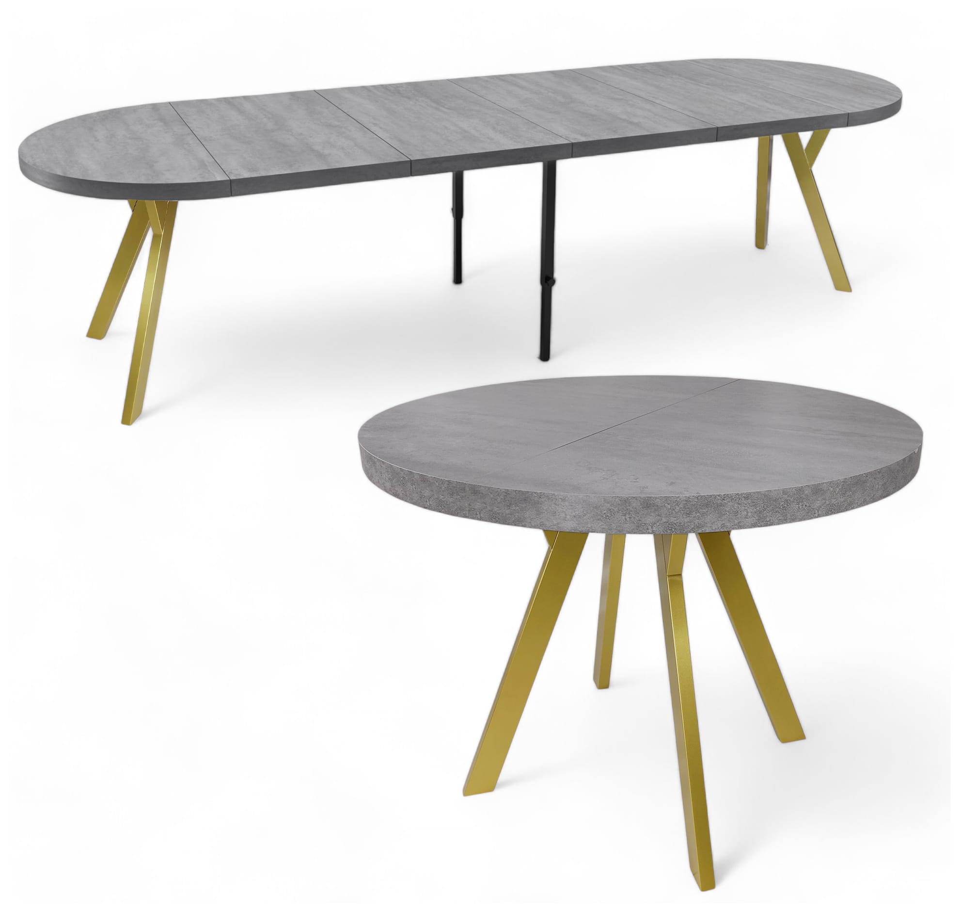 Stół solidny okrągły BETON JASNY Ø110 rozkładany do 310 cm + Złote nogi metalowe Y