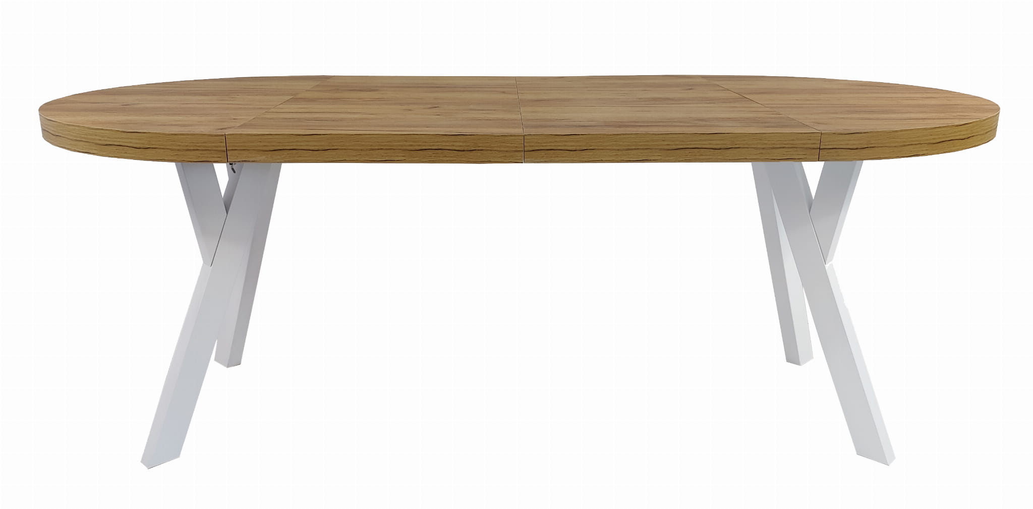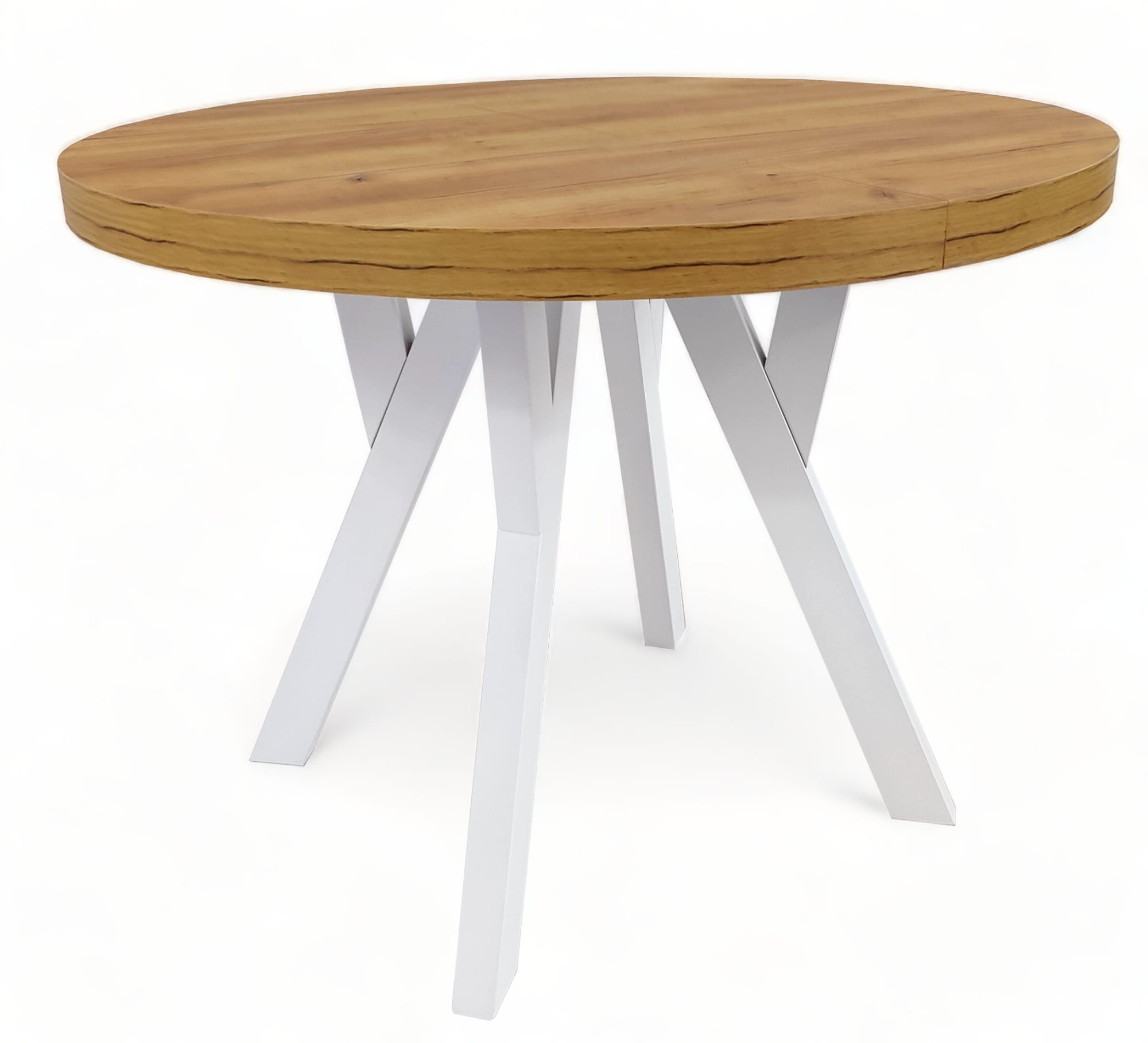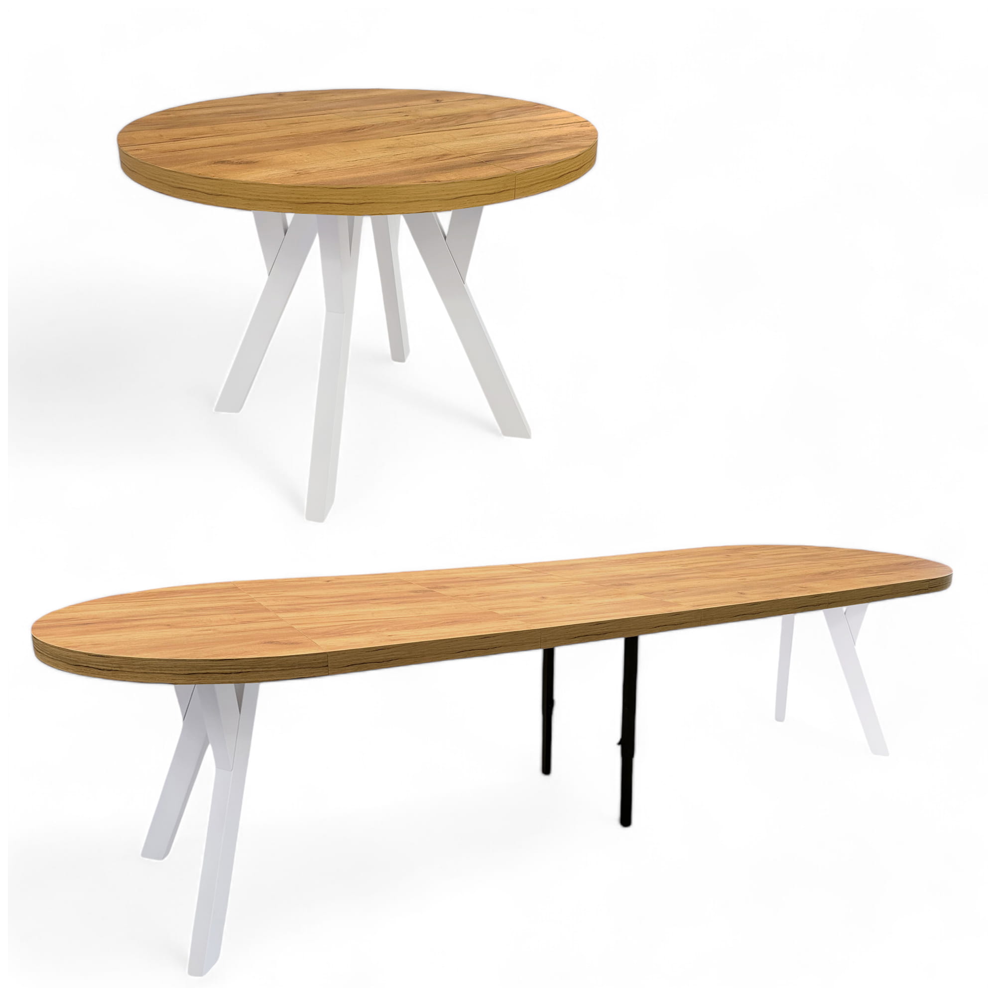 Stół solidny okrągły Biały + DĄB CRAFT Ø110 rozkładany do 310 cm + nogi metalowe Y