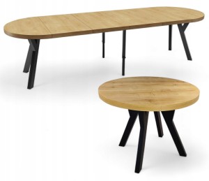 Stół solidny okrągły Czarny + DĄB HAMILTON EGGER Ø110 rozkładany do 310 cm + nogi metalowe Y