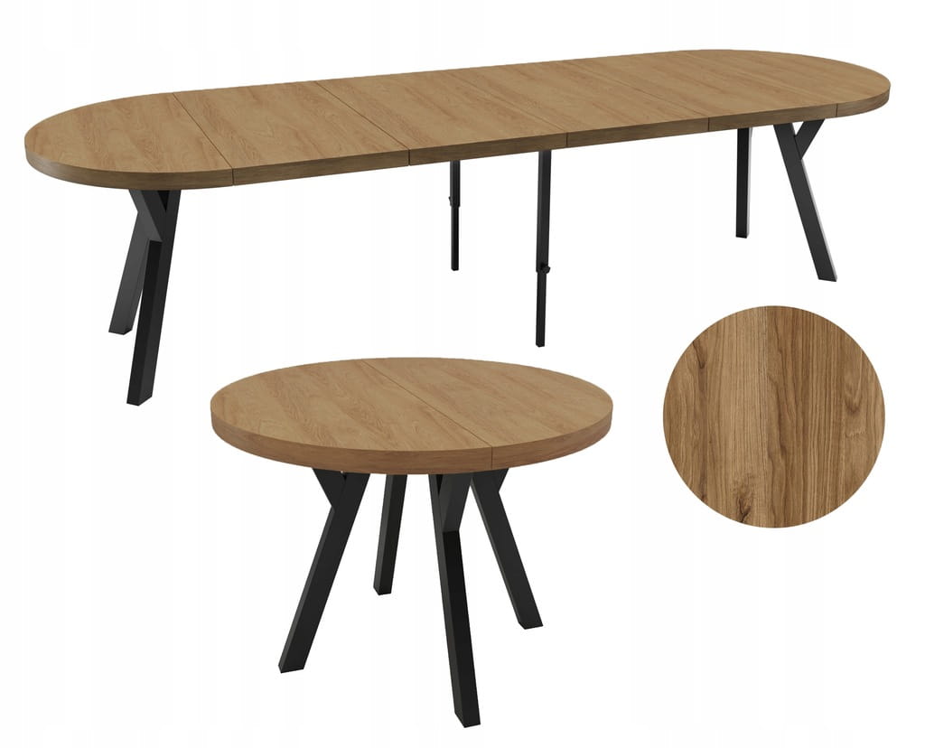 Stół solidny okrągły Czarny Metal Y + DĄB PRADAWNY Ø100 rozkładany do 300cm + nogi metalowe Y