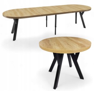 Stół solidny okrągły Czarny + NEBRASKA EGGER Ø110 rozkładany do 310 cm + nogi metalowe Y