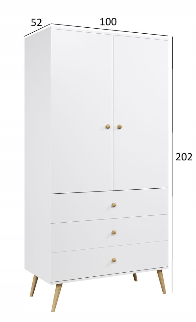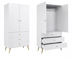 Szafa 3 SZUFLADY i drążek BIAŁA do sypialni pokoju boho skandynawska