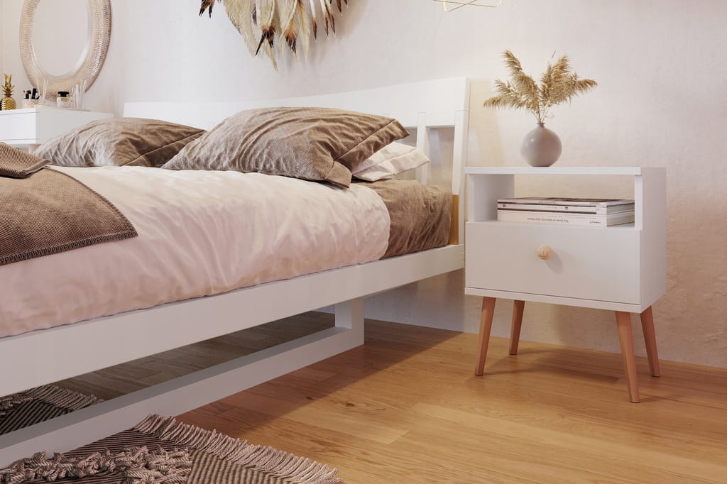 Szafka nocna stolik do sypialni BIAŁY boho
