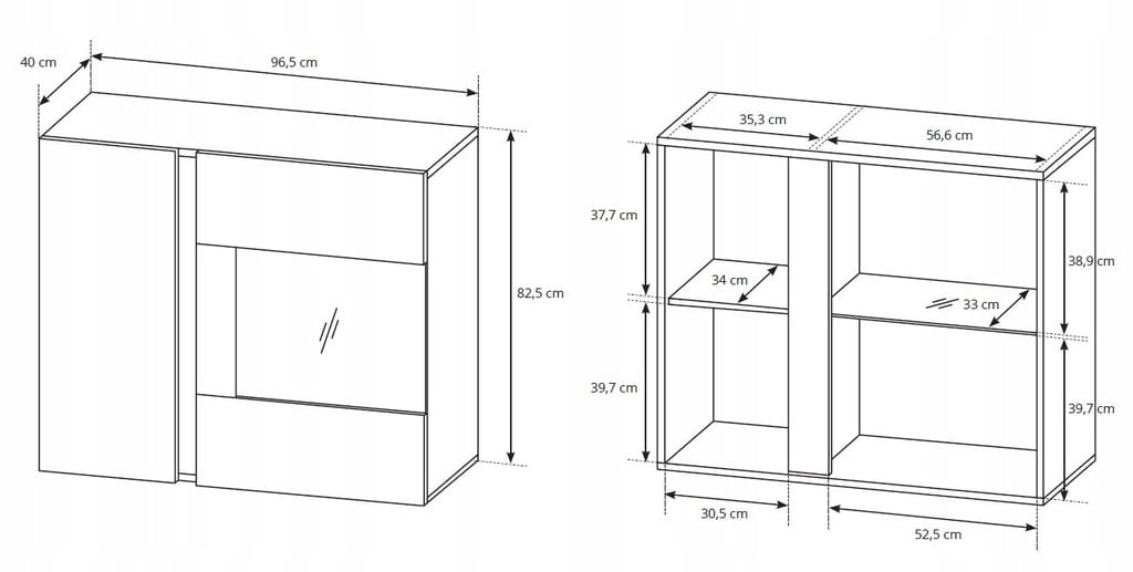 - Front / Korpus: Płyta wiórowa laminowana E05, 16 mm