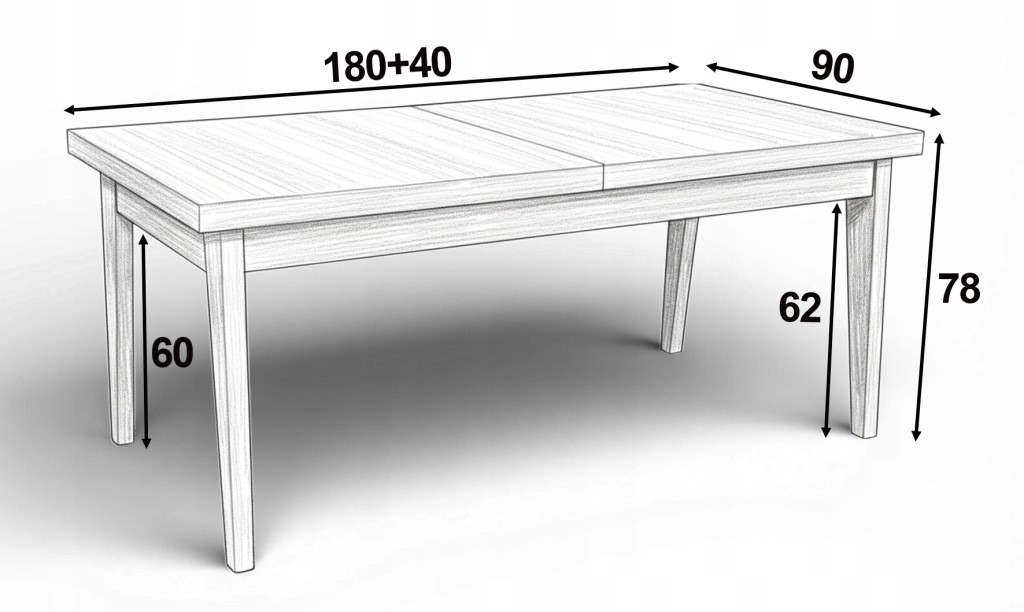 Stół prostokątny 90x180cm rozkładany do 220cm