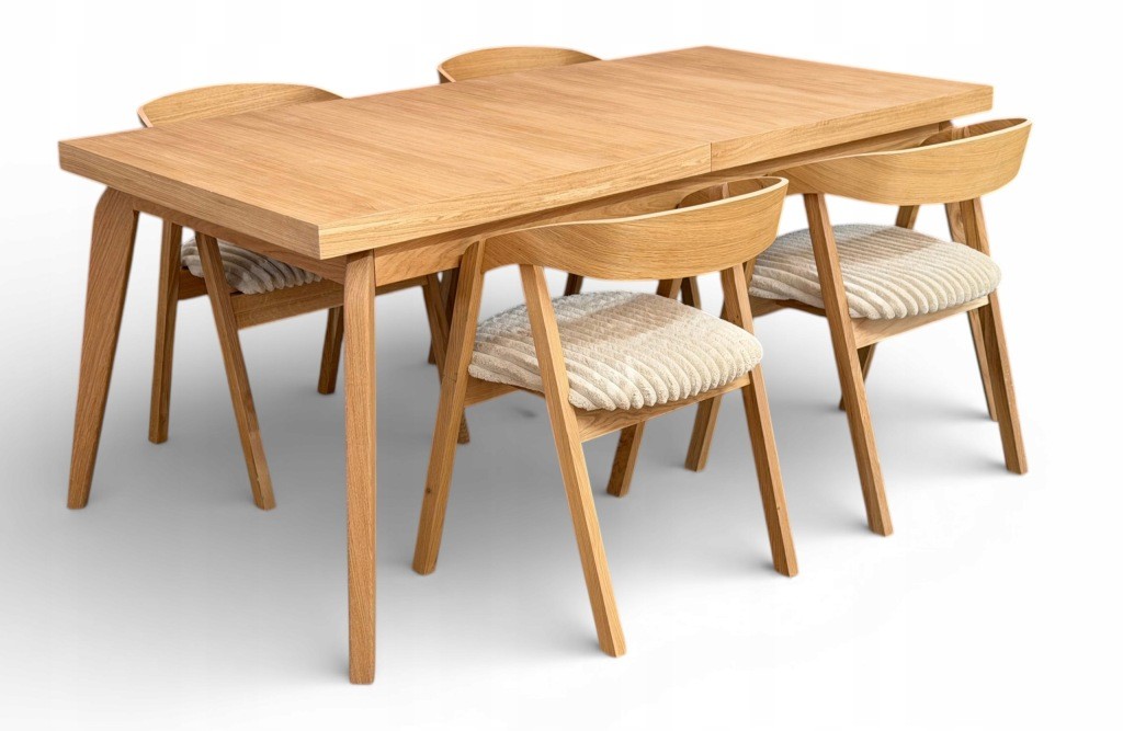 Zestaw Stół prostokątny FORNIR 90x180/220 cm + 4 dębowe krzesła sztaplowane