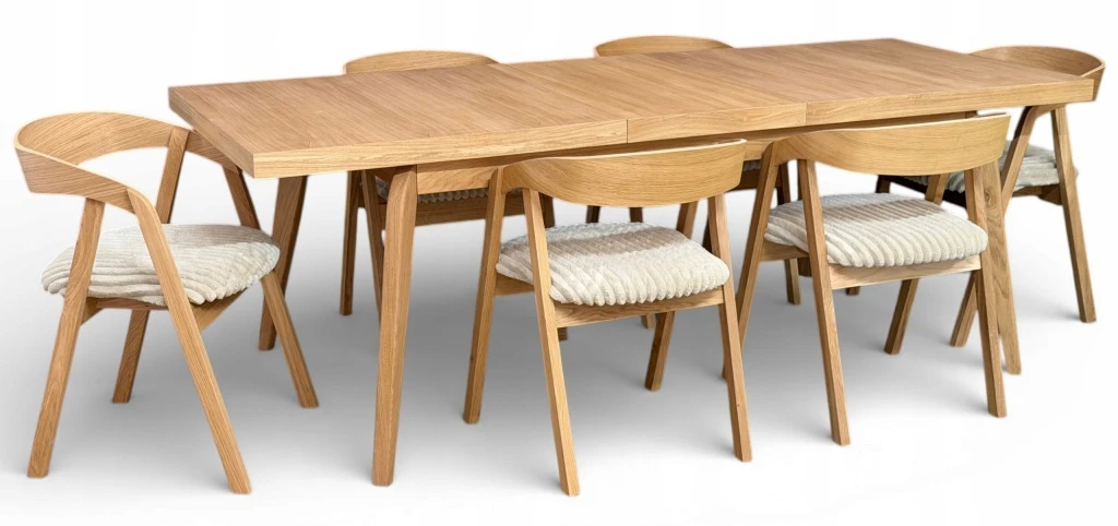 Zestaw Stół prostokątny FORNIR 90x180/260 cm + 6 dębowe krzesła sztaplowane